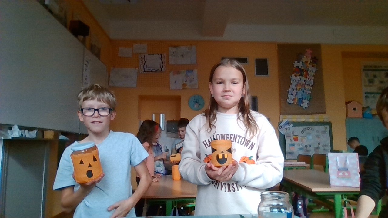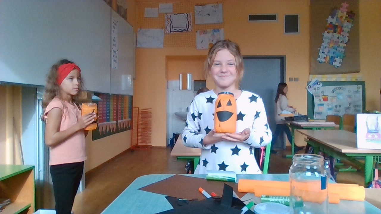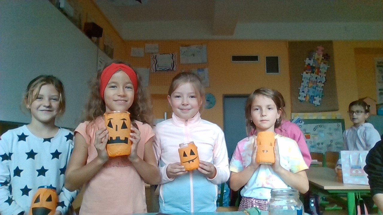 Děti vyráběly na pracovních činnostech Halloweenský svícen, myslím si, že se ji to velmi povedlo. Práci si moc užily, tvoření je velmi bavilo. Všechny svícny jsou moc krásné.