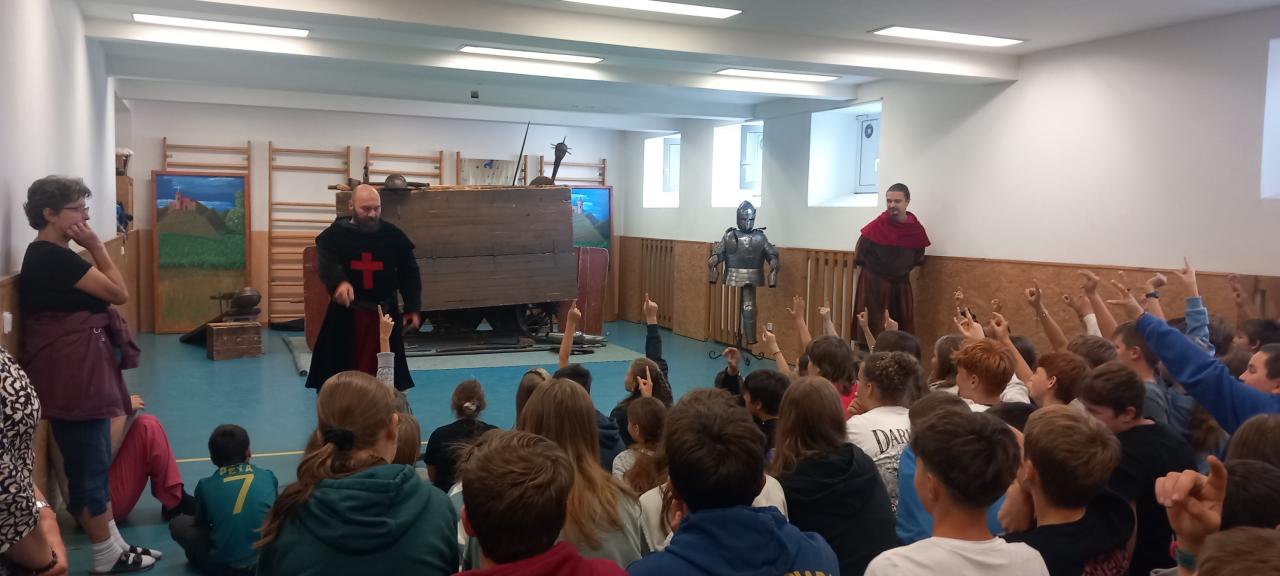 Dnes se žáci zúčastnili vystoupení Husité. Do školy přijela umělecká skupina Pernštejni a žákům zábavnou formou přiblížila husitské období.