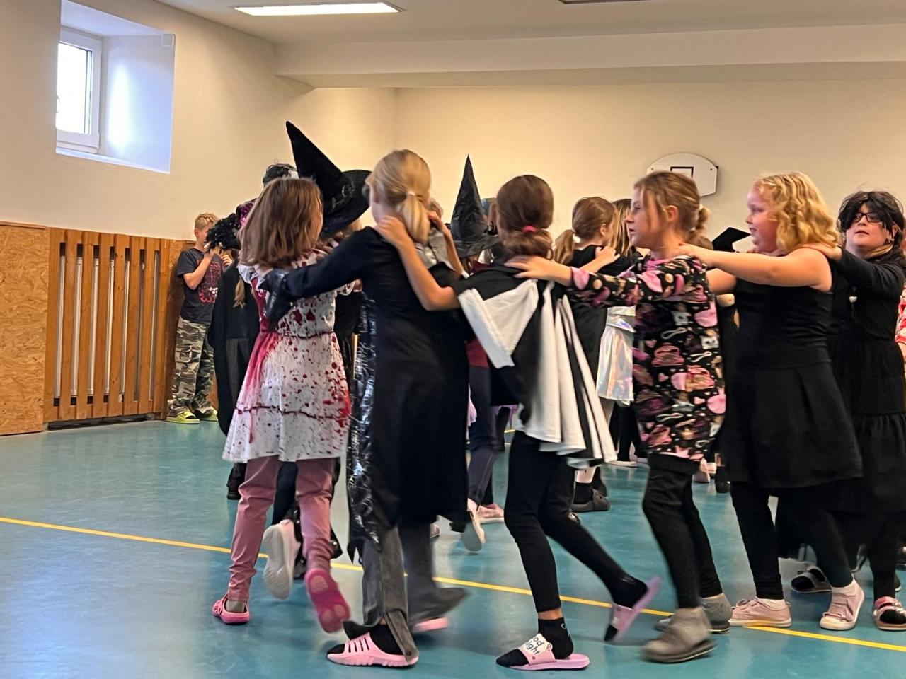 V úterý 31. října proběhl na naší škole Halloween plný zábavy, kreativity a skvělé atmosféry. Žáci 1. stupně se sešli v tělocvičně, kde je čekal taneční program a hry, zakončené vyhlášením soutěže o nejkrásnější dýni v pěti kategoriích. Dýně, které děti vytvořily ve třídách i doma, byly nádherné a plné originálních nápadů – porota tak měla opravdu nelehký úkol.