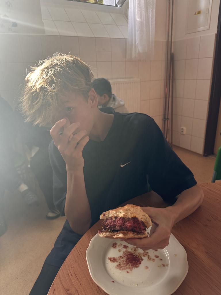 V rámci hodiny angličtiny připravovali deváťáci svoje vlastní burgery. Vše se povedlo na jedničku.