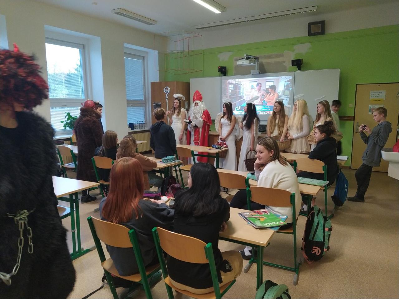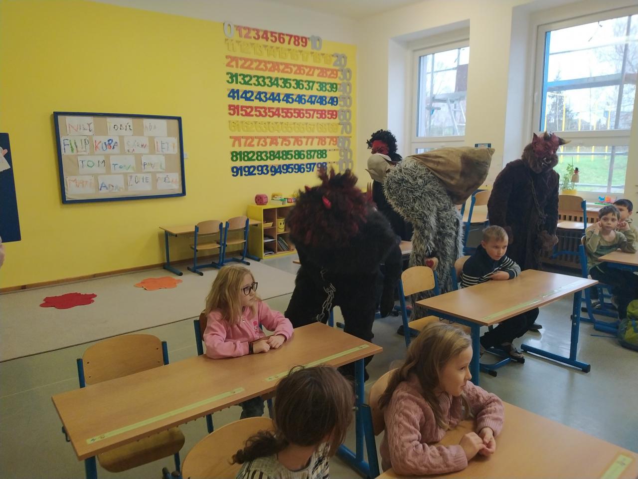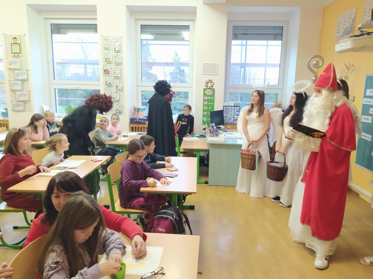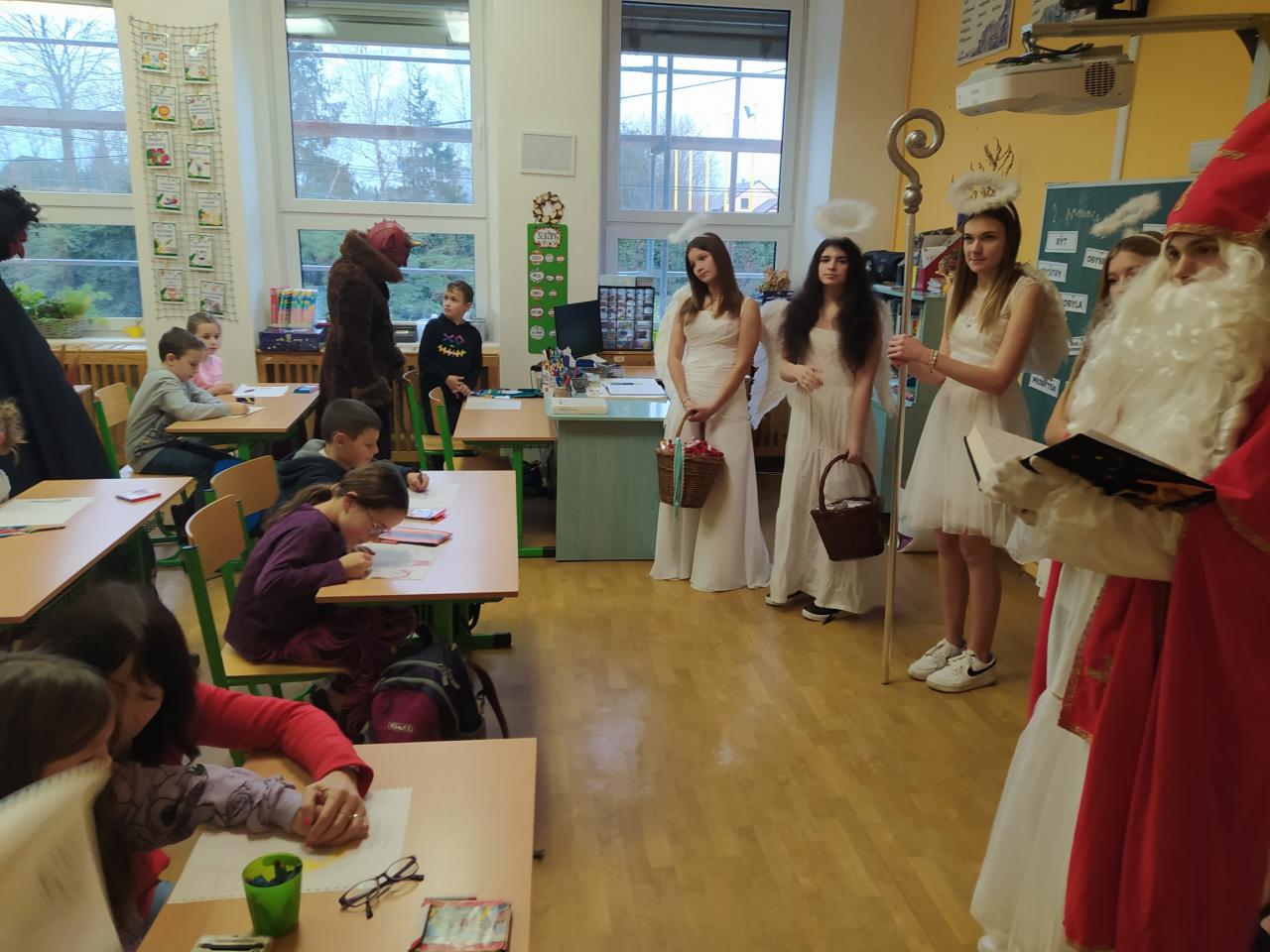 V pondělí 5. 12. u nás na škole chodil Mikuláš s anděly a čerty. Děti byly hodné, čerti nikoho neodnesli, andělé rozdávali sladkou nadílku.